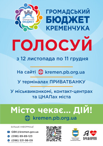 Сьогодні 12 листопада о 00.01 годині стартувало голосування за проекти Громадського бюджету м. Кременчука 2019!